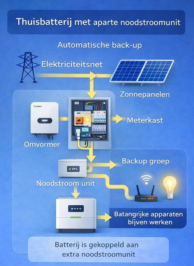 Thuisbatterij met aparte noodstroomunit